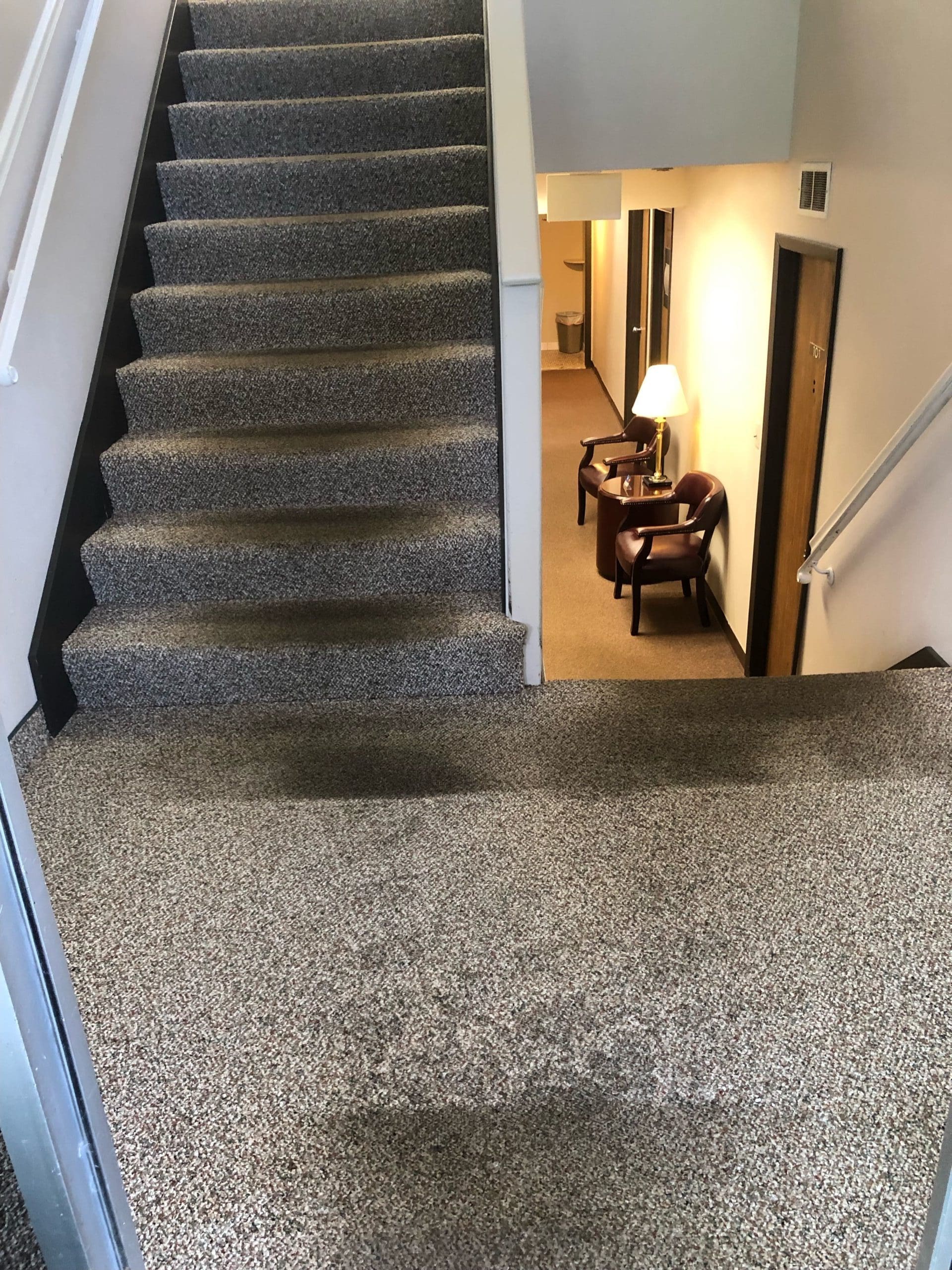Dirty Stairs in a commercial building about to be carpet cleaned