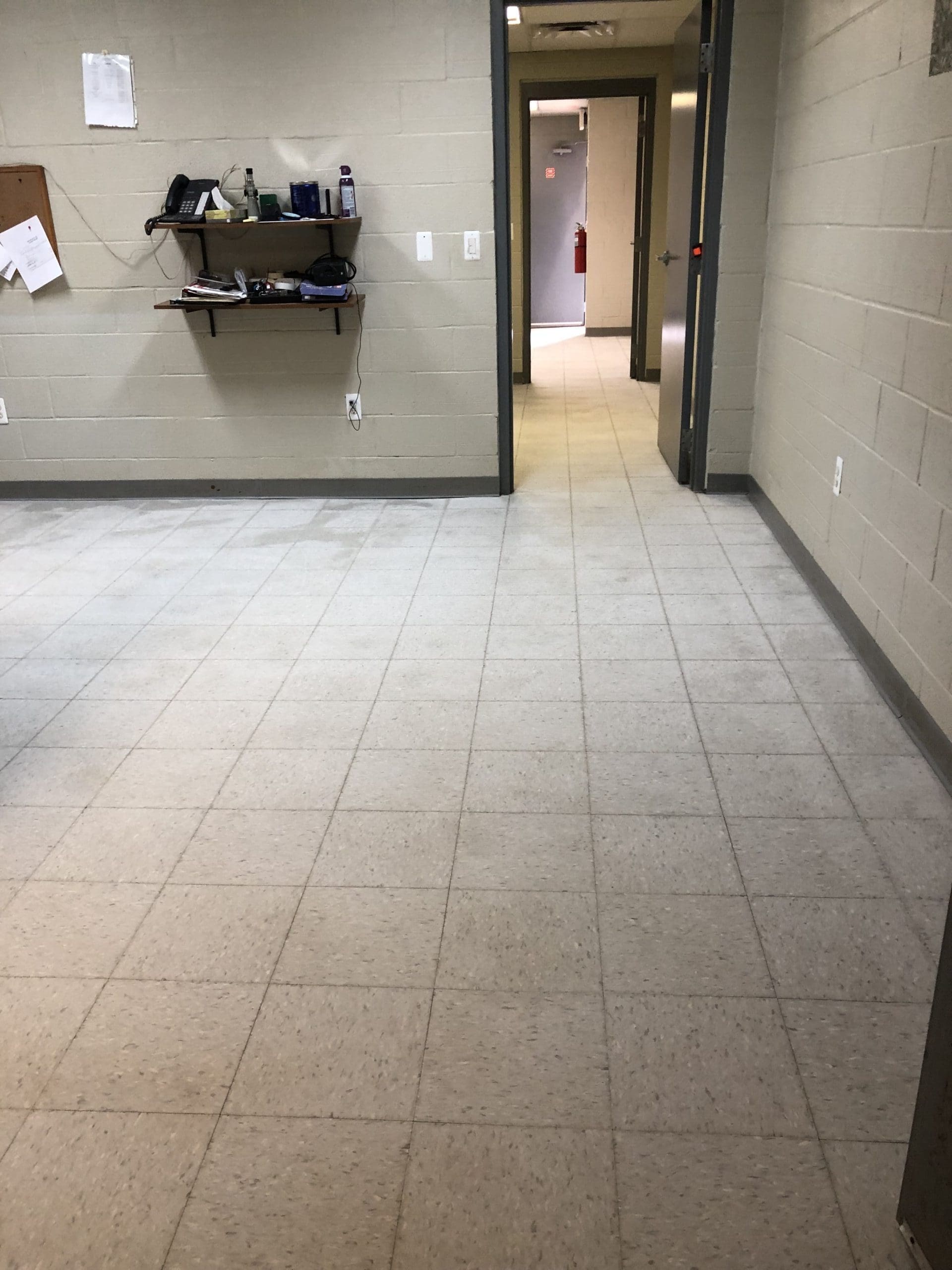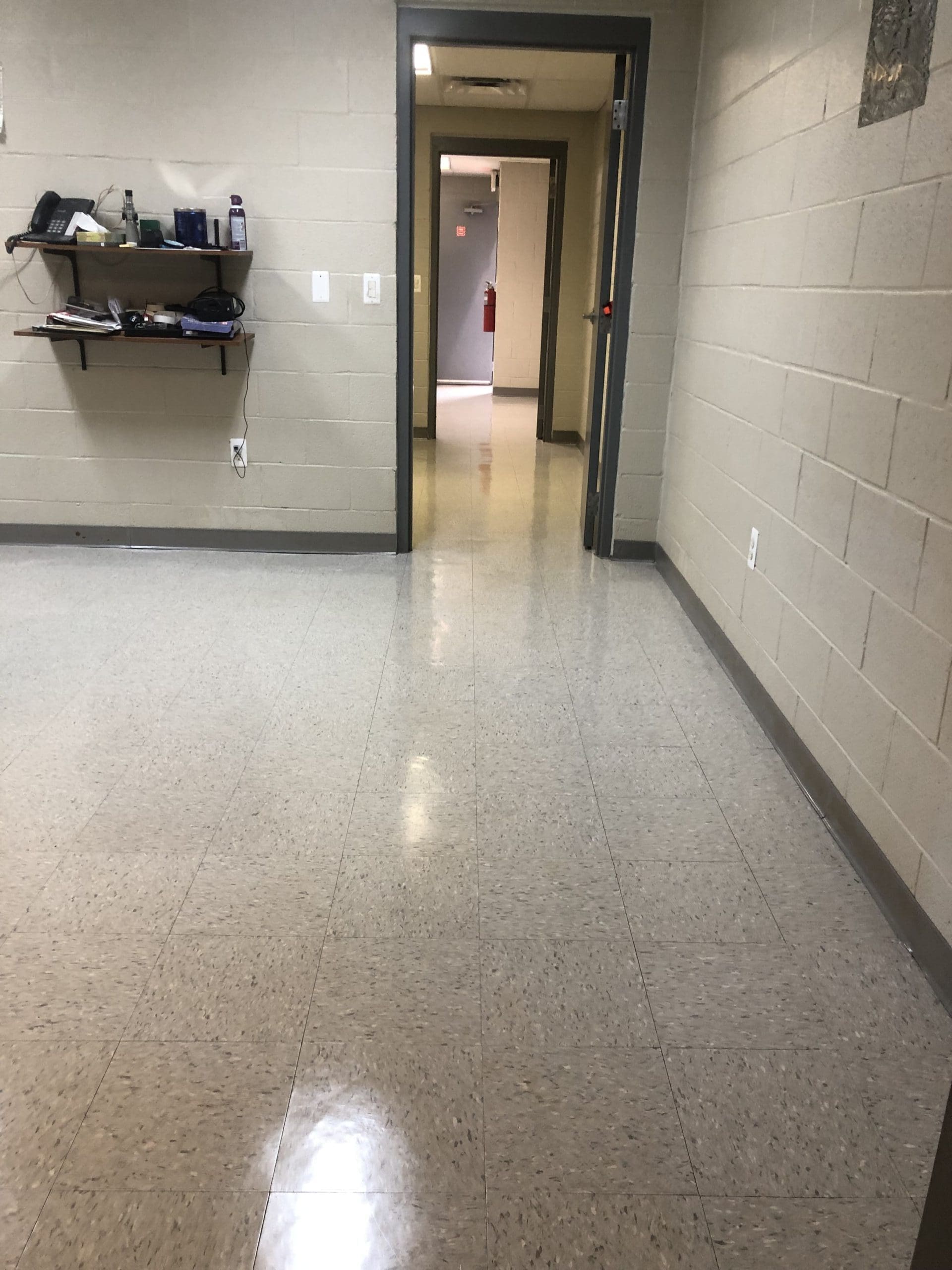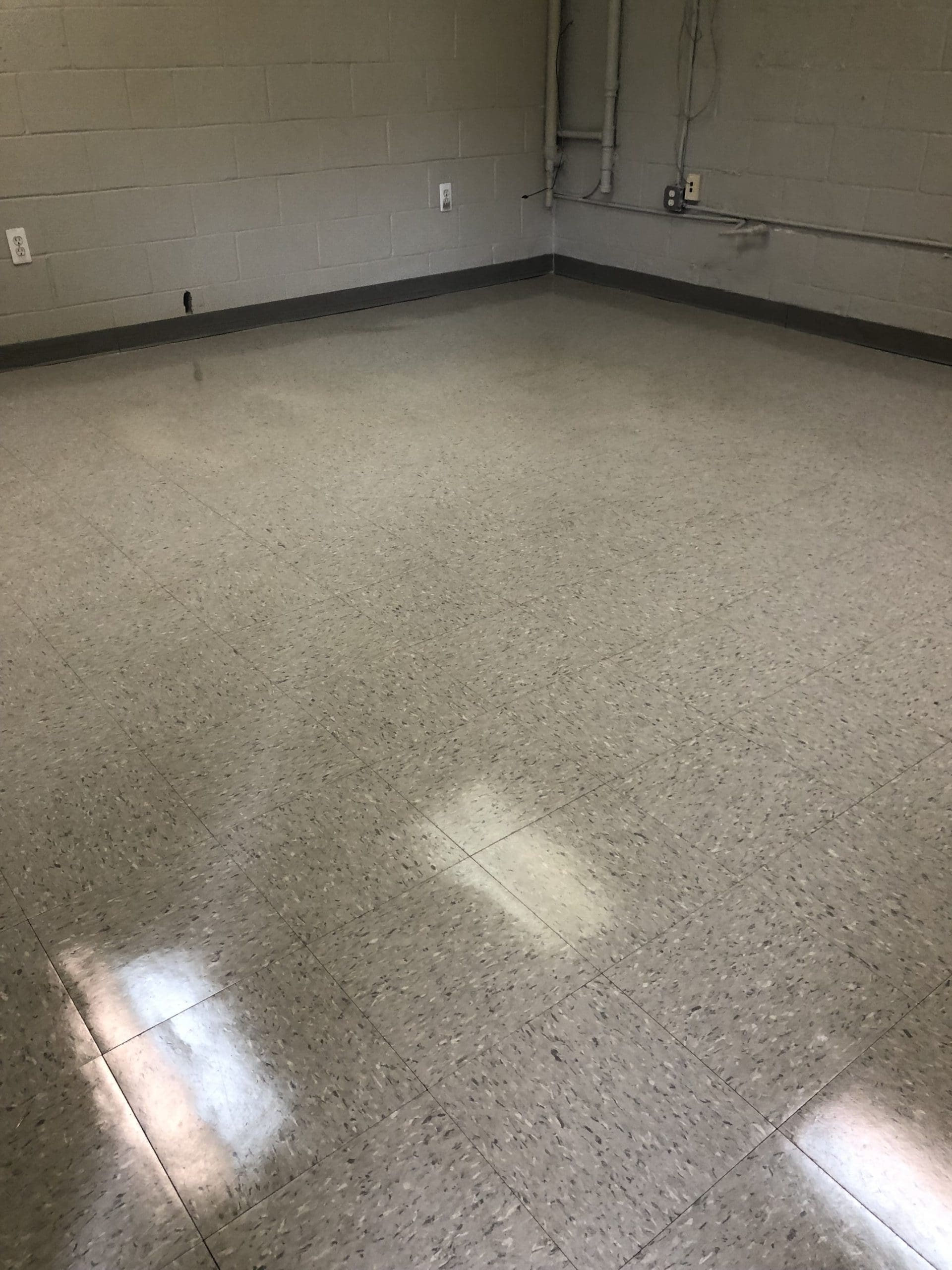 Light scrubbing and complete waxing of newly installed VCT vinyl tile to a high shine is a specialty.